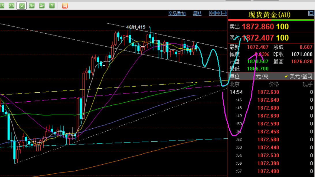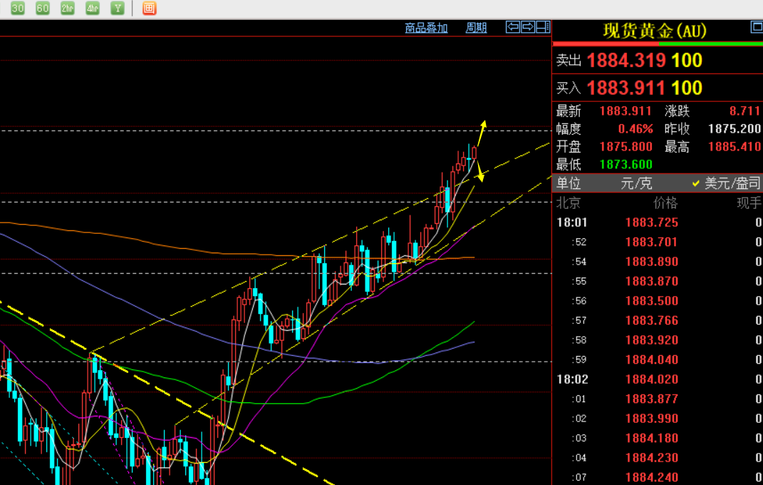 郑氏点银:黄金接近风险强压区,启动中长期布局 回顾昨日行情走势及出现的技术点: 第一,黄金方面:昨晚ci年率符合市场预期6.5%,不过小于前值7.1%,通胀进一步慢下移;由于并未走低太多,并未小于预期,价格则先跳空先急跌一波至1875,刚好触及日线5均线支撑,但速度秒快