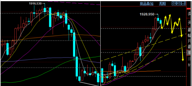 郑氏点银:黄金考验1900一线支撑,短期或开始酝酿顶部结构 回顾昨日行情走势及出现的技术点: 第一,黄金方面:早盘依托凌晨横盘支撑直接强势续涨一波至1928.6一线,差一点击破1930中期防守,好在午后连跌回落失守早间起涨点1916,则意味着欧盘还有进
