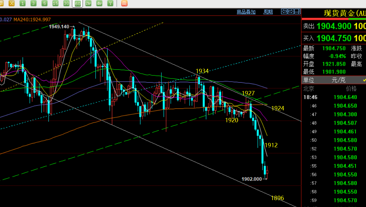 郑氏点银:黄金高位存在反复整理,原油震荡逐步走高 回顾昨日行情走势及出现的技术点: 第一,黄金方面:昨日黄金早盘承压前晚高点,当10点出现大阴回测后,则判断压制有效,提示1916可跟空入场,看日线进一步的震荡回测修正;而午后横盘无法反弹,欧盘就存在进一步