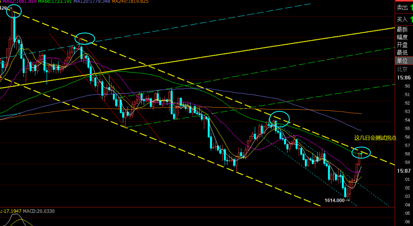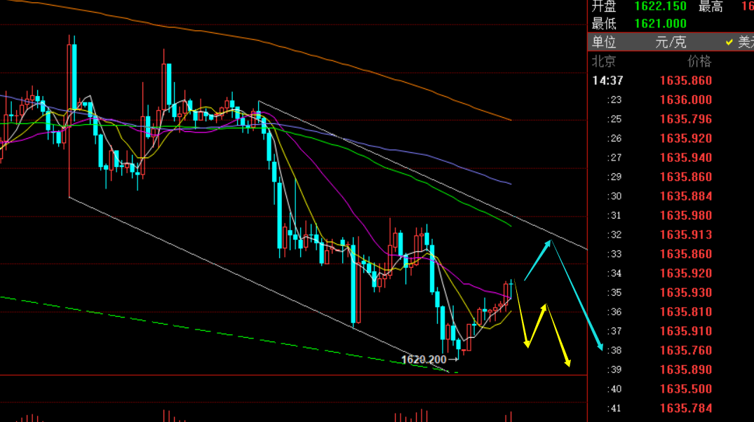 郑氏点银:急速拉升终究只是反弹,金油展开底部宽幅整理 回顾昨日行情走势及出现的技术点: 第一,黄金方面:昨日亚盘震荡续跌走弱破底至1614一线,隔夜1637下最终目标1615止盈到位,而原计划通知学员等1610一线短多测试,1600、1588等波段抄底测试,短线多是因为背离严重,