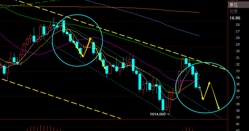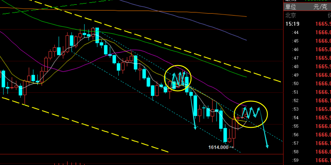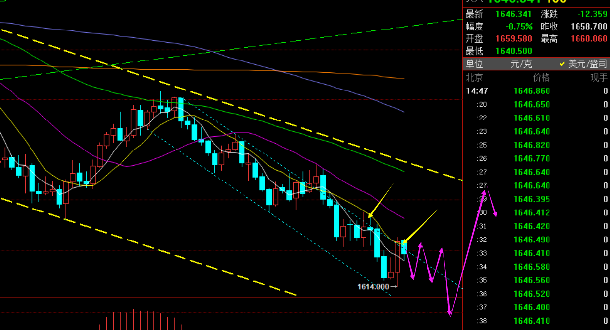 郑氏点银:黄金连阴加速走弱出底,原油同步进行 回顾昨日行情走势及出现的技术点: 第一,黄金方面:上周五日线大阴有效破位前面五日底部箱体震荡区间后,昨日则反弹继续空,跟随进一步看下行;日内白盘依托1650、1640分批布局做空,美盘1644仍继续空,夜间一路下挫最低触及