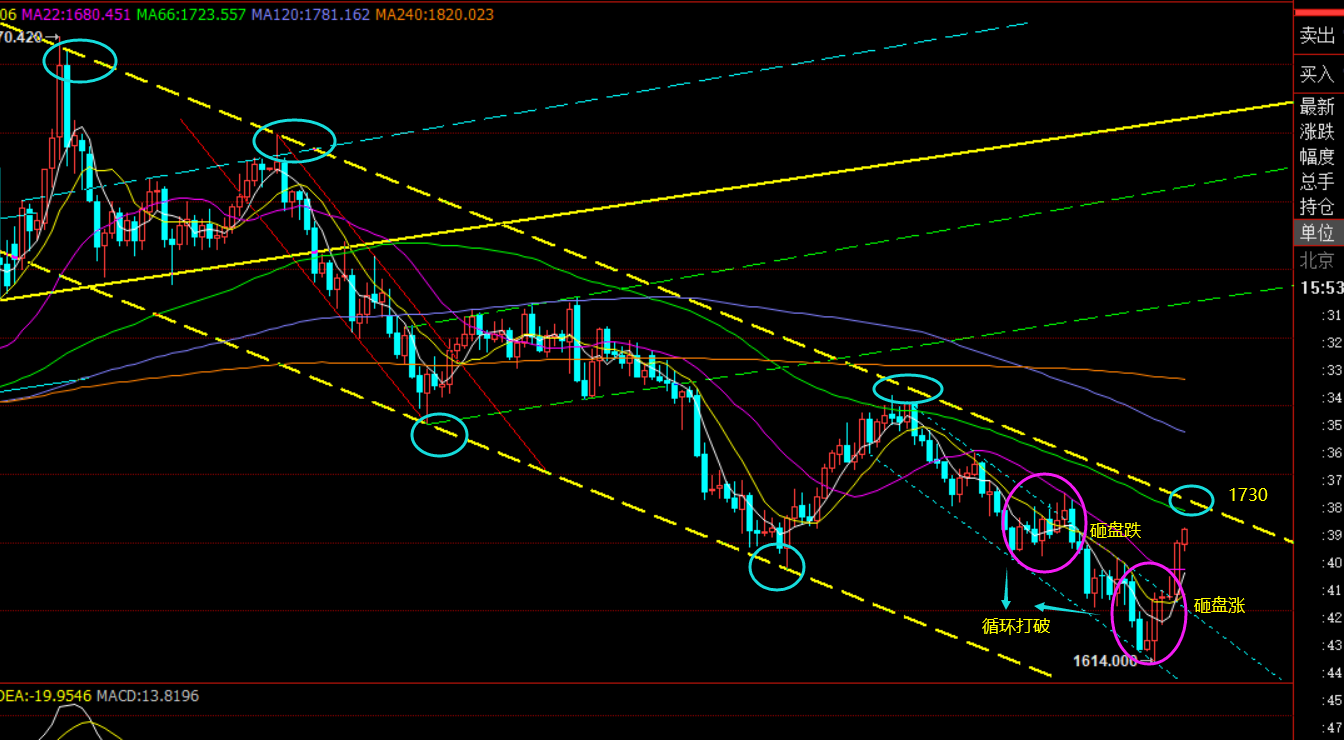 回顾昨日行情走势及出现的技术点: 第一,黄金方面:昨日亚盘迎来一波下跌,午后延续至1640一线,隔夜1660空成功盈利拿下一波,而因为连阴回测,且短趋势空头背景下,反弹多次1656一线仍两次反复空,都震荡跌至1644-47盈利,至于反手多的参考点在618分割位置1632-33,因此美盘见反弹都是去反复布