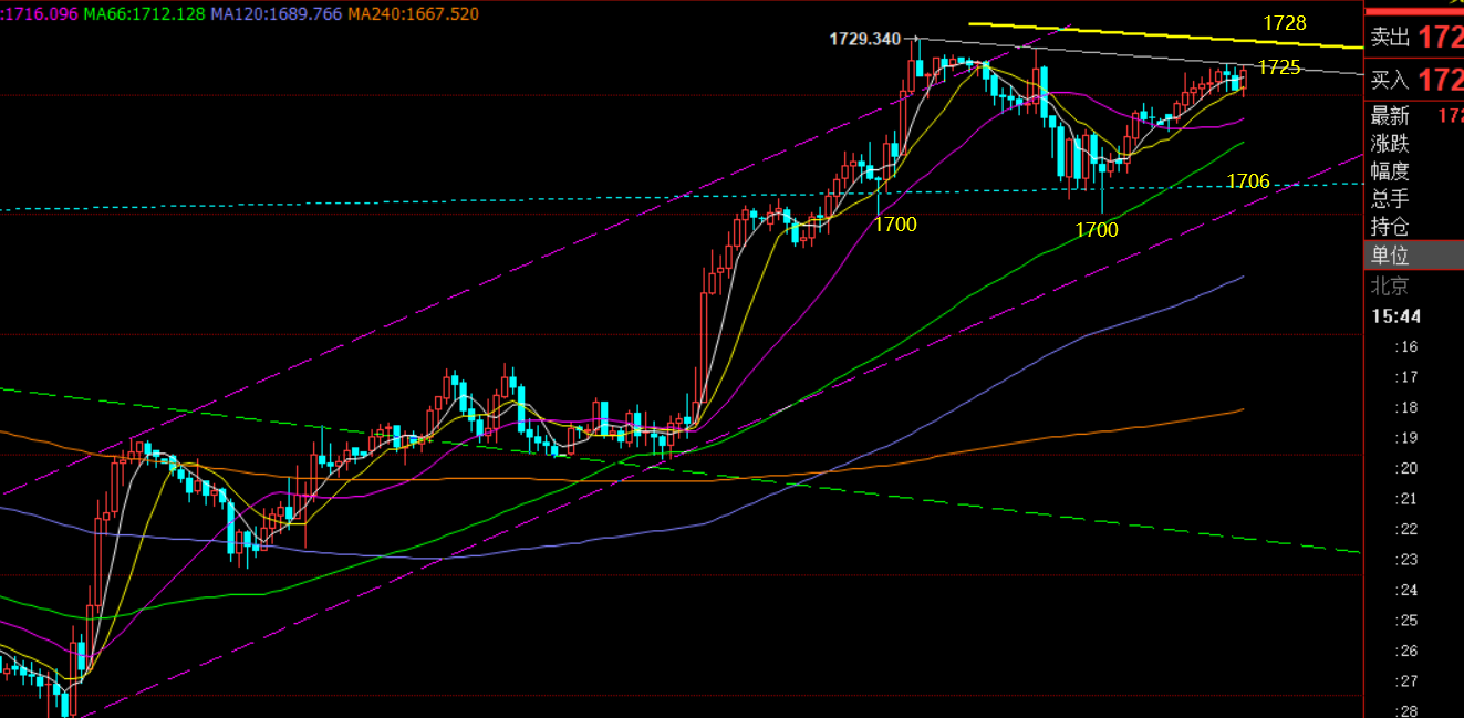 郑氏点银:黄金1700上继续震荡整理,原油等双背离回落 回顾昨日行情走势及出现的技术点: 第一,黄金方面:昨日指出一波拉升后,触及日线大通道上轨阻力有所承压,将展开区间震荡过程,支撑1695,阻力1730-35;盘中欧盘给出1726空,跌至1706收割;由于欧盘连跌下滑,美盘前