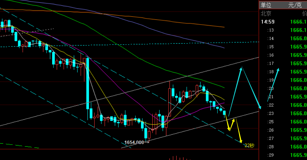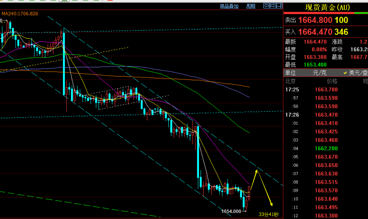 郑氏点银:黄金1680下压制仍弱势,原油符合逐步压制下跌 回顾上周五行情走势及出现的技术点: 第一,黄金方面:隔夜破位1680下跌加速下行,上周五早盘直接压制1667下走弱续跌至1654,欧盘有所探底拉升,但反弹力度仍不大,依托早间开跌口出现承压迹象