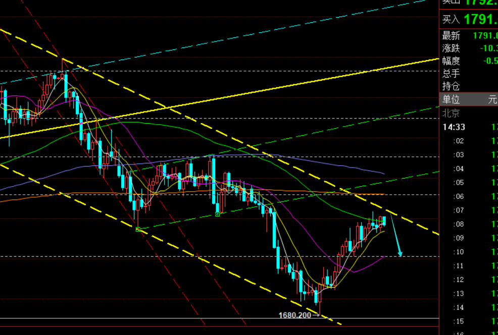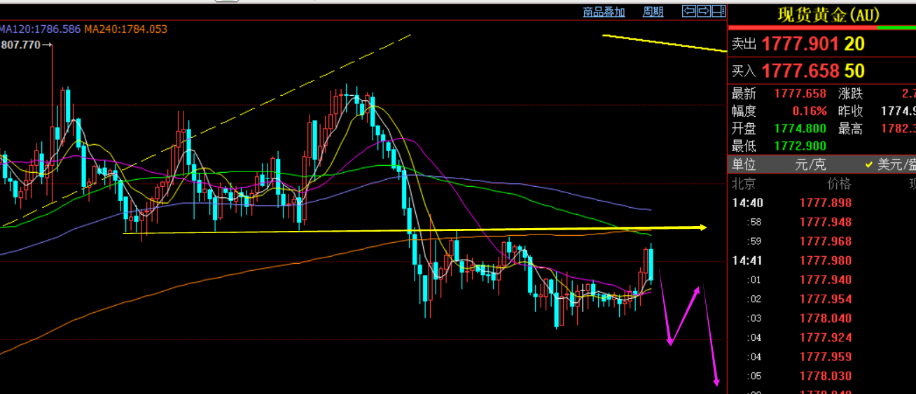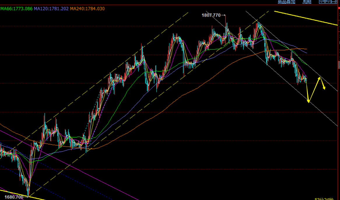 郑氏点银:黄金终结逼空走压制回调,原油进一步走弱下探 回顾昨日行情走势及出现的技术点: 第一,黄金方面:昨日早间横盘压制隔夜1802高点,一路连跌下滑,美盘20点前触及1772一线低点,中途没有出现任何的阳K线;阴跌慢跌之后,美盘后先出现急拉则往往是诱