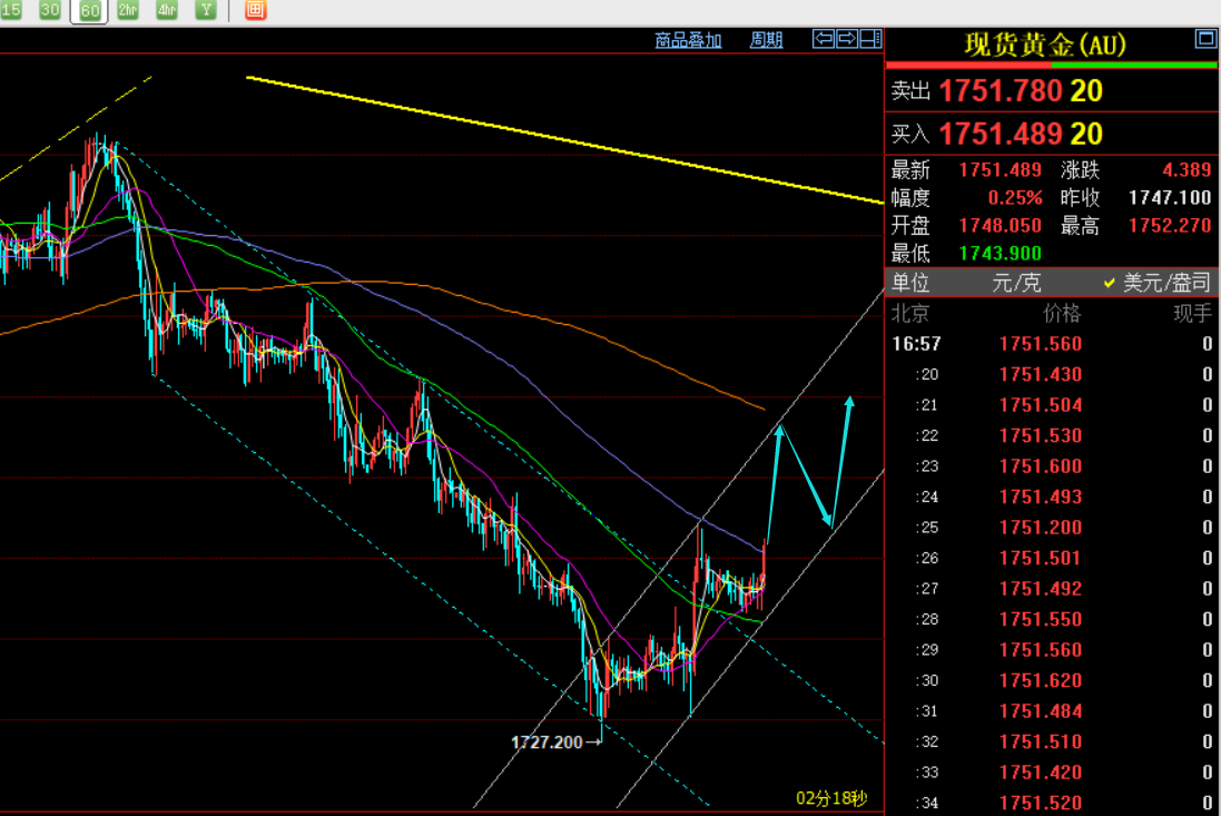 郑氏点银:黄金1755下仍继续看反弹,原油背离抗跌看涨 回顾昨日行情走势及出现的技术点: 第一,黄金方面:周二黄金隔夜持续拉升一波,昨日依托回踩1742-40分割支撑以及顶底转换点,4小时10均线等多处共振继续逢低做多看反弹延续,最终符合预判,迎来一波拉升,今日直