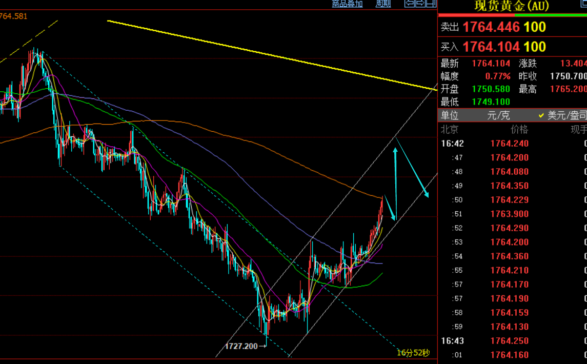 郑氏点银:黄金日内1752节点支撑,原油92.5上支撑 回顾昨日行情走势及出现的技术点: 第一,黄金方面:昨日早盘直接续涨,到位原定的短期目标1765,不管是周二1735上多,还是周三1746多,都全部稳健收割;毕竟走势上属于震荡氏反弹,见好就收,1765上方也存在一定压制,不过