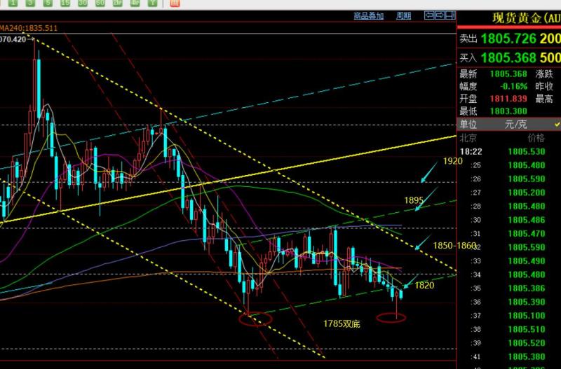 郑氏点银:黄金日线启明延续反弹上行,原油106.3上维持反弹 回顾上周五行情走势及出现的技术点: 第一,黄金方面:上周五早间并未先反弹试探隔夜跌幅382或50分割压力,而是直接低位横盘压制,午后下破1805-06支撑,那么按照前几天循环的走法,先依托分割压力去布局空也就没
