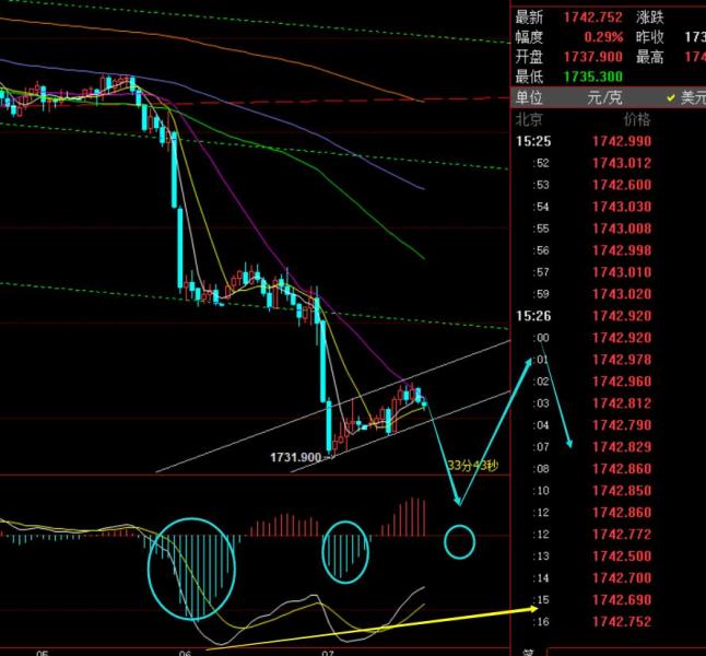 郑氏点银:黄金1744下底部震荡压制,原油反弹仍继续空 回顾昨日行情走势及出现的技术点: 第一,黄金方面:从日线底部两小十字K来看,仍是极弱表现,因此,昨日早盘1740直接布局做空,以日线5均线下作为承压,最终目标1725到位;盘中亚欧盘日内震荡压制,美盘初先急拉则容易诱多