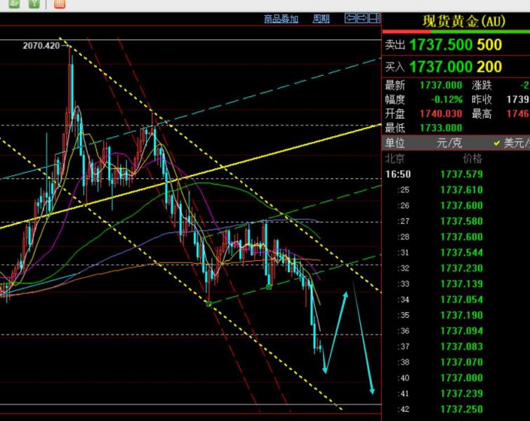 郑氏点银:黄金仍弱势继续空,原油大跌抛售也是空 回顾昨日行情走势及出现的技术点: 第一,黄金方面:昨日早间先急跌至1722再快速反抽至1744,又马上回吐至1730一线,一天的振幅也就在早间完成了,而一早急拉延续性是较差的,加之处于下跌通道,站不稳1740依旧是极弱格局,因此日