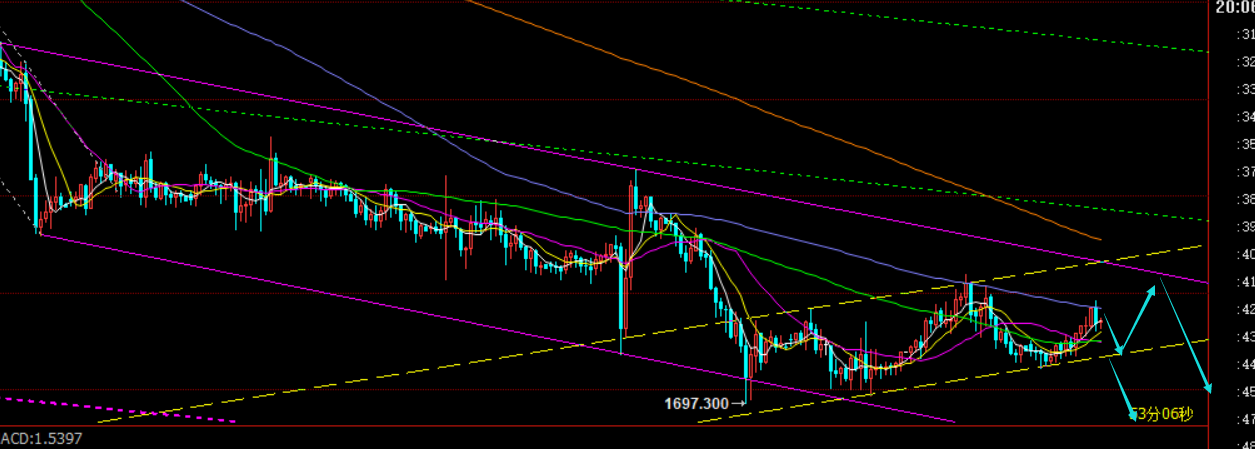 郑氏点银:黄金反弹仍只是短暂,原油日线5均线下压制 回顾昨日行情走势及出现的技术点: 第一,黄金方面:昨日亚欧盘继续以极弱看压制对待,依托隔夜跌幅反抽382分割阻力1732下先继续看空,美盘CI通胀公布刷40年以来新高,金价先急跌一波至1707,再反抽至破