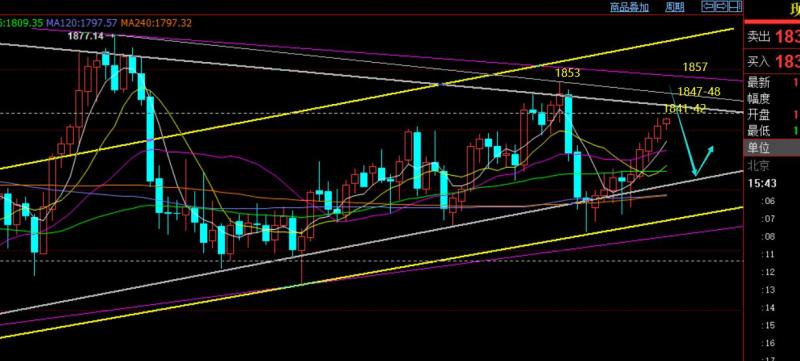 郑氏点银:黄金1880下测试压力,原油仍先空后多 回顾昨日行情走势及出现的技术点: 第一,黄金方面,上周五隔夜大涨,突破前期几个关键阻力转为强势,因此昨日依托回测382分割位置1848逢低做多,可惜日内只触及1850,差2美金并未打入埋伏的挂单,最终抵达预期目标1866一线;由于此