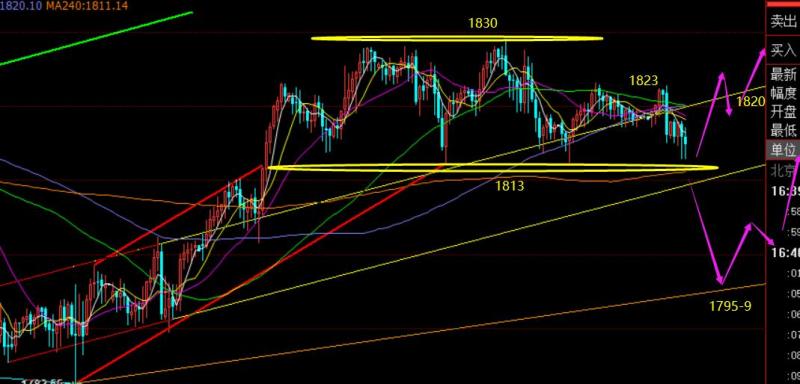 郑氏点银:黄金1810上先测试多,原油强势一路冲 回顾昨日行情走势及出现的技术点: 第一,黄金方面,昨日早盘依托短期趋势支撑1818先反弹,但隔夜1823高点再次承压后出现小时线大阴失守了趋势支撑,则提示隔夜1818逢低多单,稳健于1818调仓出局;大阴之后,午后横盘3个小时依然承压1818,