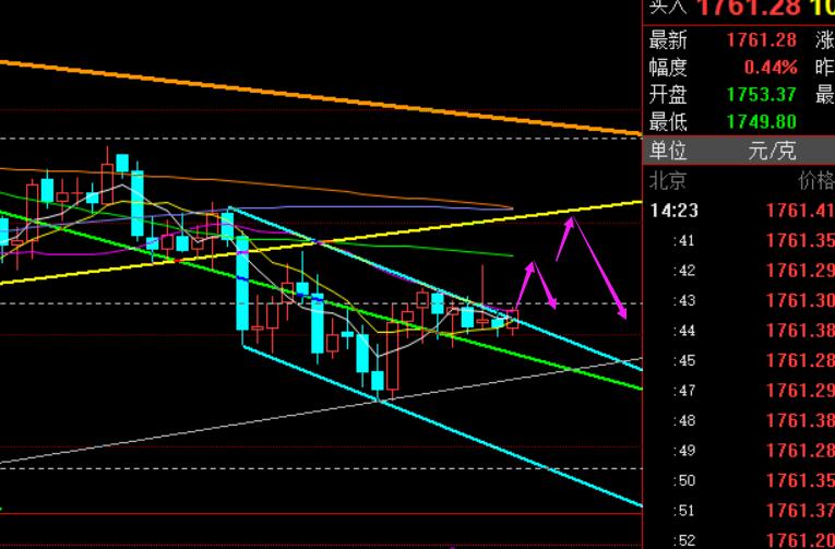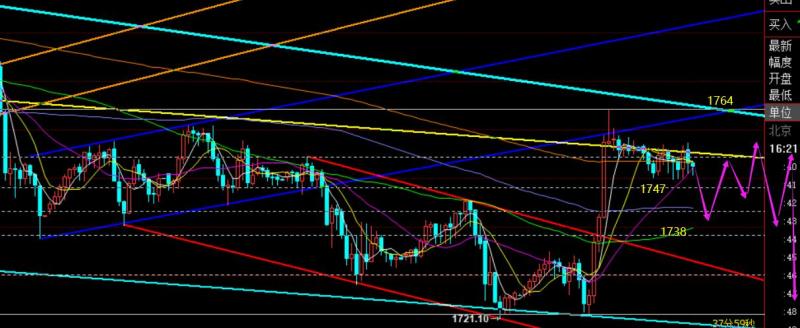 郑氏点银:黄金1765-1745区间震荡对待,原油77下承压 回顾昨日行情走势及出现的技术点: 第一,黄金方面,昨日早间仍循环压制一波,早间1760空单也就顺利止盈1750,这是本周第三次循环发生,每日早盘都是跌;另外欧盘同样保持压制向下跌,但不同的是,昨日亚欧盘的持续跌,
