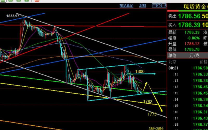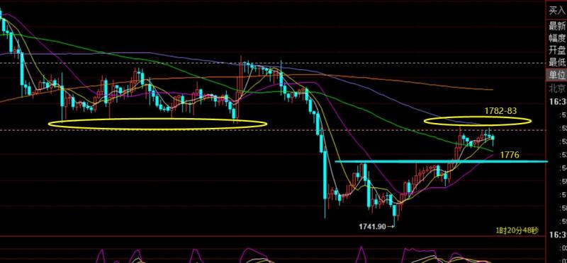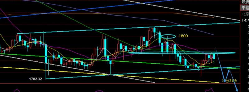 郑氏点银:黄金风水岭1802下压制仍弱,原油背驰逼空上行 回顾昨日行情走势及出现的技术点: 第一,黄金上周五隔夜压制1800震荡下跌一波至1787低点,而早间先续跌,往往震荡行情中,续跌或续涨失败率都很高,就这容易探底回升的原因,可惜的是未触及预期计划博多的1781-82通