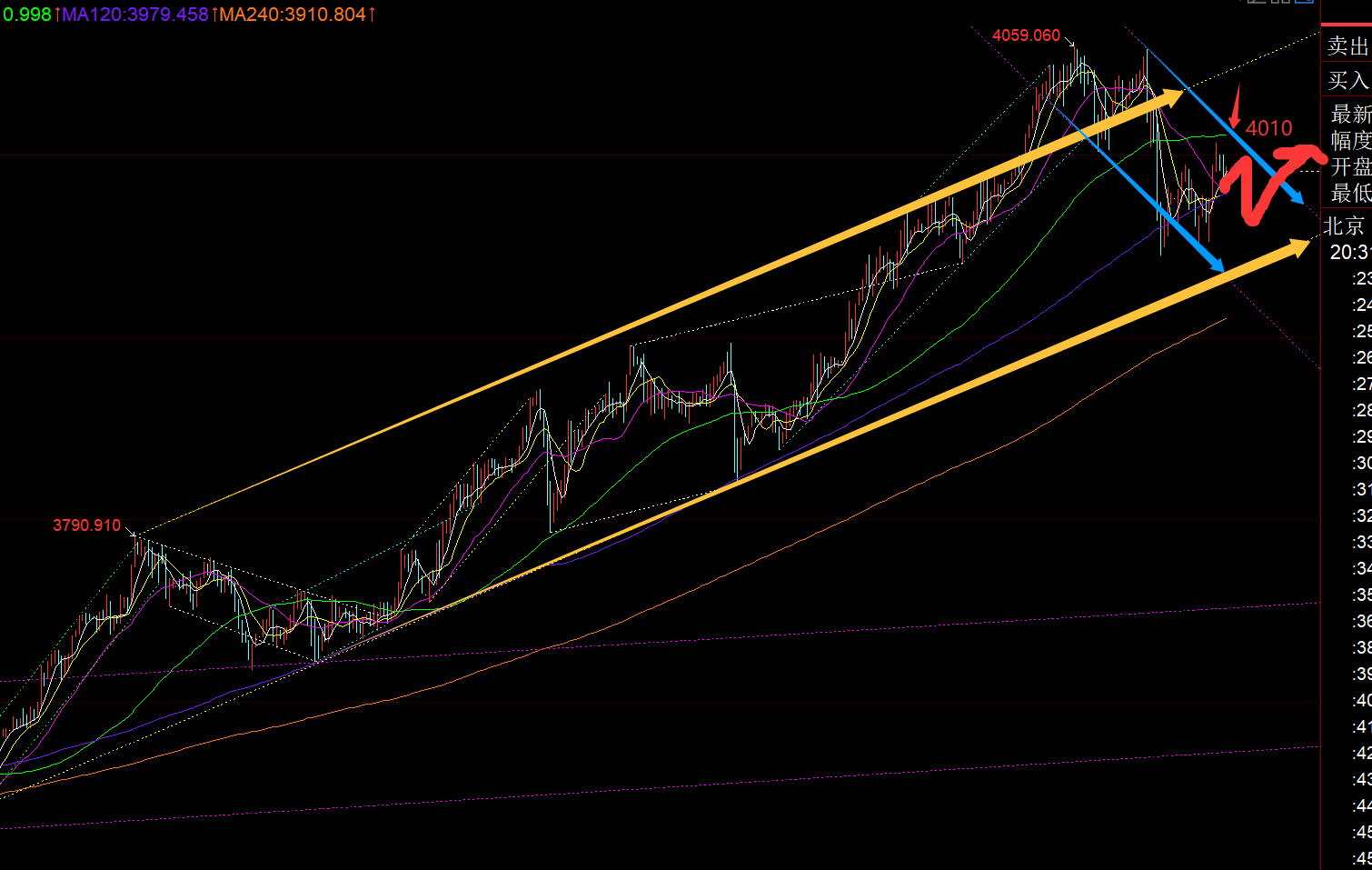 郑氏点银:黄金日线有所小加速迹象,今晚回踩4005上继续看涨 回顾昨日行情走势及出现的技术点: 第一,黄金方面:前一日隔夜强势收盘,昨日早间开盘仍走循环直接续涨一波,10点冲高回落,11点收阳再次反包,且重新站上小时线10均线,则尝试跟随看涨,成功拿下10米;