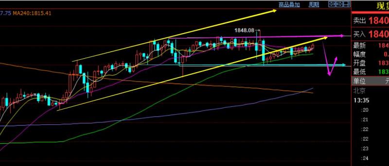 郑氏点银:黄金短线再次走强延续,原油反弹空 回顾昨日行情走势及出现的技术点: 第一,上周五非农晚间价格压制1848冲高回落,收盘前已经破位了短期的趋势支撑(1807、1823.5所连接的趋势线),而昨日亚盘依托此线下方贴壁震荡反弹,但始终无法重新回到此阻力线上方,就意