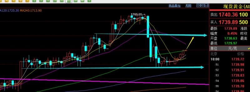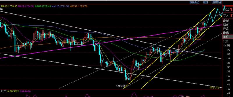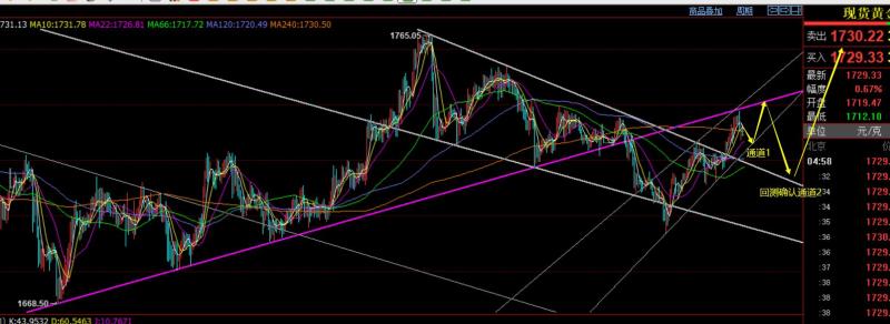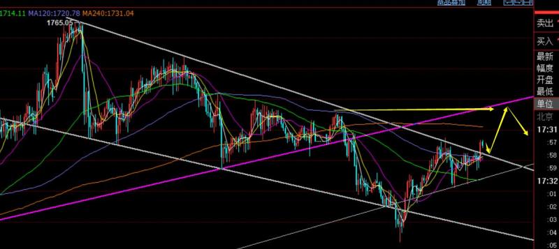 郑氏点银:黄金短期转强1736上直接多,原油34低多 隔夜支撑1727-28顶底位置,今日早盘开盘拉升,属于周末利多避险的一种释放,原本认为金价的走势还运行于震荡上行通道内发展,即涨一波,都会伴随一波回测也不小的空间,运行于如图白色上行通道内发展,但上午的运行显然开始一定程度走强,回测力度