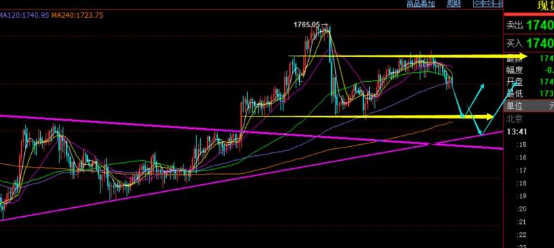 郑氏点银:金银短线震荡转跌,原油继续看涨 昨日亚欧盘保持上行通道偏多运行,美盘触及1745压力后,迎来一波大幅跳水,主要是因为消息刺激带来的避险消退导致,所幸周一和周二安排的所有金银多单,昨晚杀跌前都高位盈利收割了,夜间破位1738关键下轨支撑后,就基本短期变盘,有震荡上行通道转为震荡