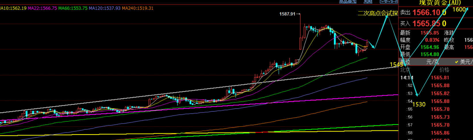 郑氏点银:黄金非农1544逢低先多,原油59逢低先多 昨日黄金走势多空比较符合预期思路,欧盘一波下跌后触及1540,提出此位置是前期3号那天的起涨点,同时也逼近日线10均线,另外也强调,作为黄金前期一路强势上涨,短线第一次回测到日线10均线企稳后一般会到来二次的强力上攻,或测试顶部来维持高位