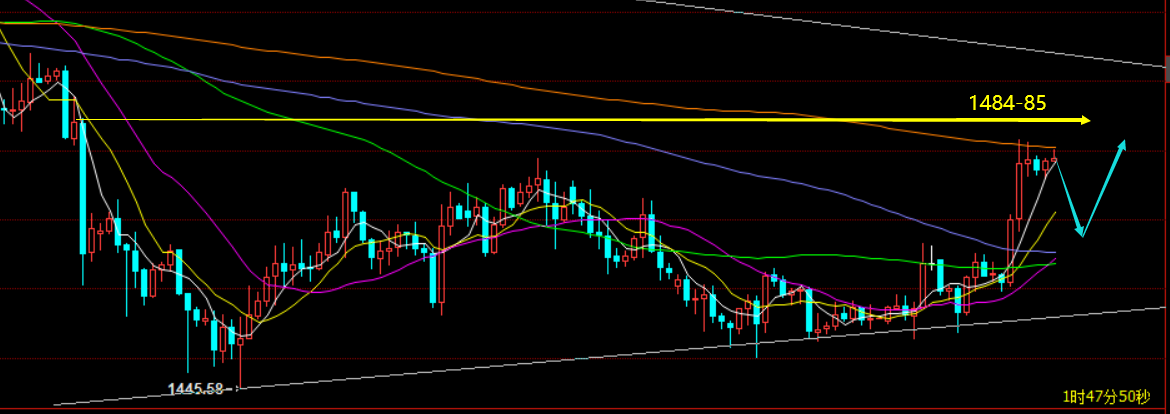 郑氏点银:黄金1462逢低多,原油60上空 昨日黄金可谓是近期波动速度最快的一次,幅度也较大,从1472先震荡上涨至1487,再急跌瀑布至1465后处于底部整理,只要近期一直关注笔者解析思路的朋友,相信昨日的走势其实不难,1486-87是强调的日线趋势压力,触及做空很正常,白天依托1472-73小周期通道支撑