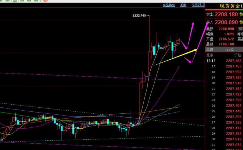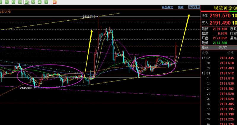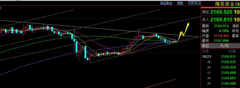 郑氏点银:黄金多头猛进,继续顺势看涨,油中期80上继续走高 回顾上周四行情走势及出现的技术点: 第一,黄金方面:上周四给不到预期2184回测做多点,一路逼空走高,而美盘抵达短期通道上轨2215下有所承压,则2211-12试探了短空,也成功一波下探至2202提示注意逢低盈