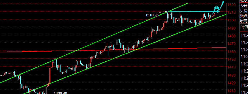 郑氏点银:黄金强势待破1520,原油短线还有反弹 昨日黄金下滑再次虚破1490后迎来大幅度的强势拉升,美盘回测依托1500后经过高位1505-06数小时横盘后,半夜5分钟直接拉升百点以上,最高冲击1520一线,此位置也是笔者一直提示的多头目标点,隔夜1503多以及今日早间1512多,都得到了不错丰厚的利润收