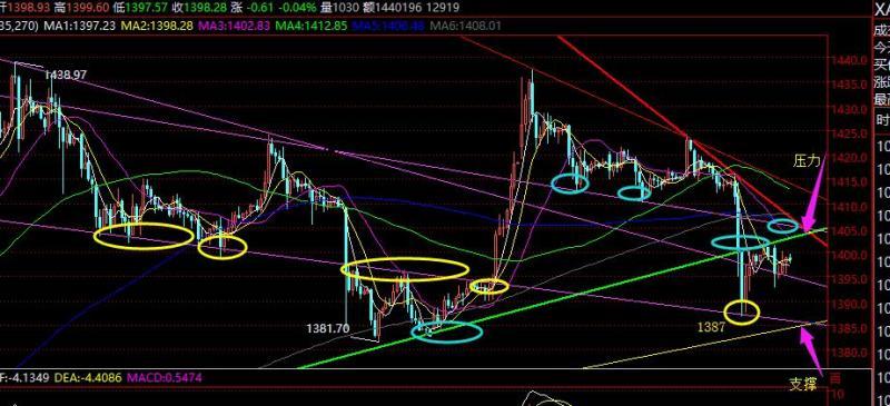 郑氏点银:黄金1385守住则看涨,原油58逢低多 昨日亚盘延续隔夜弱势运行,欧盘下挫破位亚盘以及隔夜低点延续走弱一波后,触及1385反弹,美盘并未二次延续,而是直接来了V型反抽,冲击1400关口压力,从周线级别看,5均线支撑暂时撑住,日线周一冲高回落,周二探底拉升,形成“搓揉形态”,那么今日