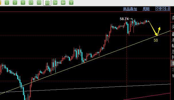 郑氏点银:黄金1305下先看跌,原油58逢低去多,外汇跌 昨日原油欧盘虚破高点上涨,压制58.7后冲高回落跌破亚盘58.2低点,不过小时线大阴之后,美盘并未延续下行,而是连阳上攻,产生了小洗盘节奏,夜间倒没直接上去,横盘于58.5一线,从周线和日线形态上看,原油多头趋势未改变,而短线看,指标再