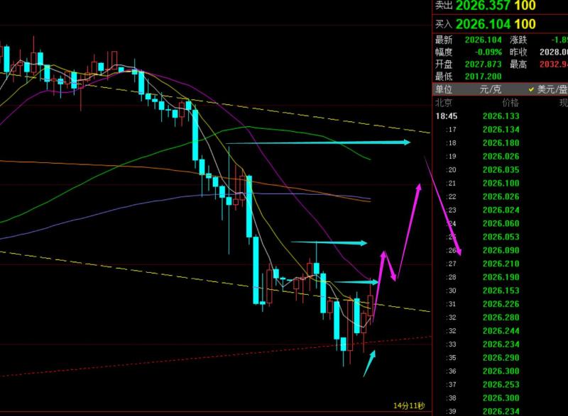 郑氏点银:黄金2030一旦冲破站上将进一步上拉,原油逐步上涨 回顾昨日行情走势及出现的技术点: 第一,黄金方面:昨日黄金白盘运行于2020-2028之间震荡,美盘向下打压一波至2011支撑,这里也是周视频强调的4小时分割支撑点,触及可震荡看涨,尾盘符合探底拉升;