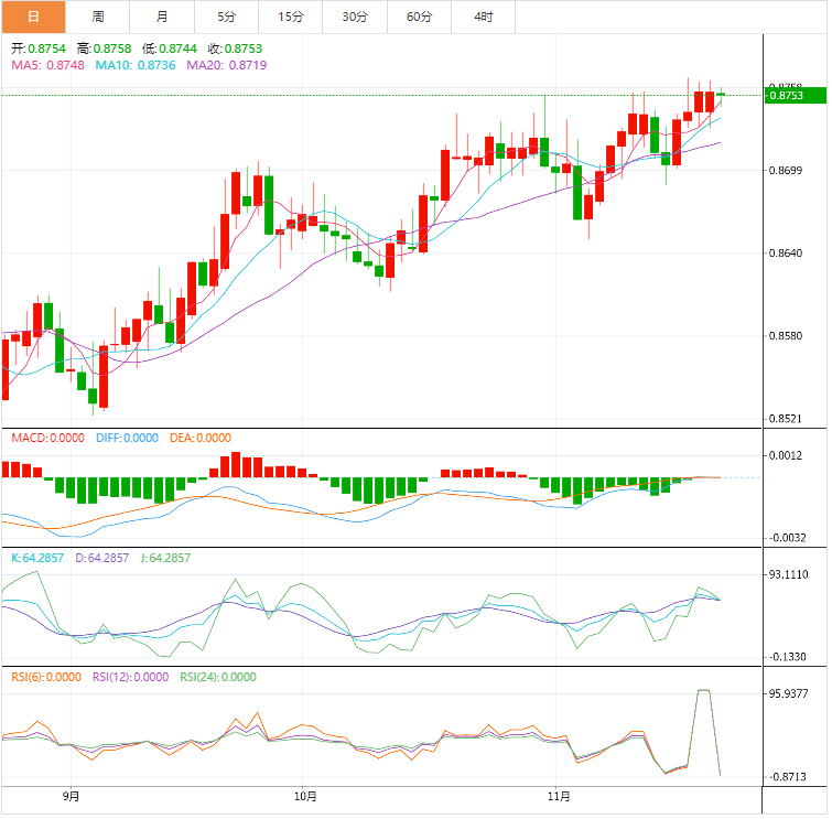 欧元兑英镑从六个月高点回落,周一欧洲市场在0.8750附近走低。周一德国经济数据公布后,欧元似乎有所下跌。正如预期的那样,10月份生产者价格指数(o)下降了0.1%。年降幅为11.0%,低于此前14.7%的收缩幅度。 不过,欧洲央行官员周五发表的鹰派言论可能会维持欧元的支撑,抵制外界对早期降息猜测的预期。德国央