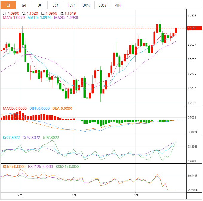 周一欧市盘中,欧元区公布德国4月IFO商业景气指数。 欧元区最新数据公布 德国4月总体IFO商业景气指数小幅上升至93.6,前值93.2。略低于市场预期94。与此同时,现况指数从95.4下降至95,预期指数(衡量企业对未来6个月的预期)从91上升至92.2,高于分析师的预期91.6。 货币市场影响 数据公佈后欧元兑美