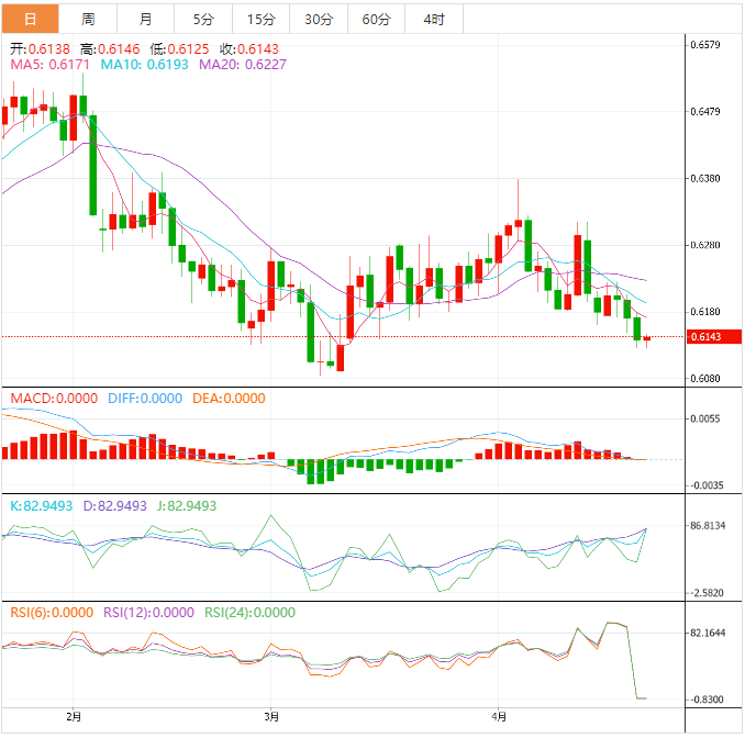 周一盘中,纽元兑美元上涨至0.6144,涨幅0.08%。 基本面上,纽元/美元/美元在欧洲时段早些时候即将跌破0.6125。该资产依然在0.612-0.6147区间内盘整,不过美元指数反弹暗示该货币对反弹之路崎岖。由于投资者对美联储(FD)连续加息25个基点非常有信心,美元指数已经扩大反弹行情至101.86。为了抑制顽固的美国通货膨胀