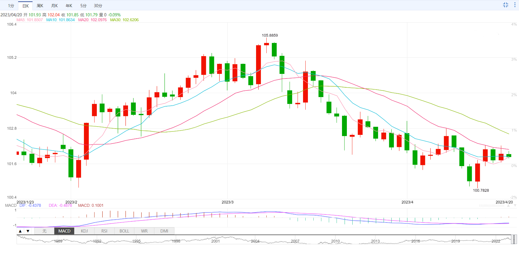 周四盘中,美元指数在102下方略有防御。 美元指数基本面综述 该指数将保持在102.00附近的不稳定表现,并将在周四的另一个交易日继续保持,因为全球市场普遍存在盘整情绪,且价格走势缺乏强有力的催化剂。 市场对美联储下次利率决定的预期没有变化,因为在5月3日的会议上,美联储很有可能将利率提高25个基点,至