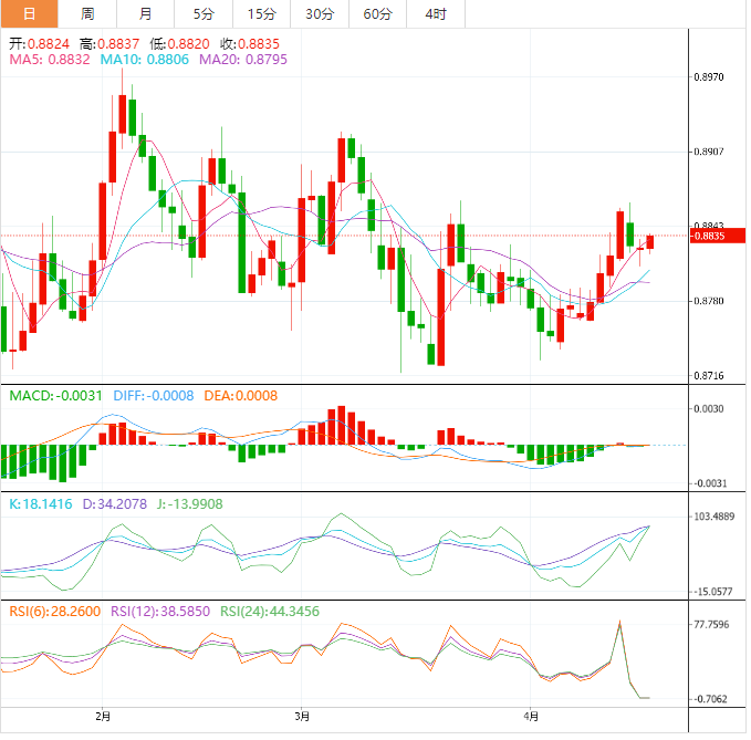 周三盘中,美元兑瑞郎上涨至0.8970,涨幅0.15%。 基本面上,美元/瑞郎于0.8960附近筑底后,正寻求反弹。过去两个交易日,美元/瑞郎守住上述支撑。美元指数整理至101.65附近后试图回升,为美元/瑞郎注入一些力量。据彭博社报导,亚特兰大联储银行行长拉斐尔·博斯蒂克表示,他赞成再提高一次利率,然后在一段时间内将