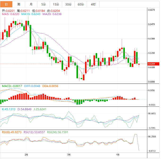 周一盘中,纽元兑美元下跌至0.6206,跌幅0.06%。 基本面上,纽元/美元大幅下跌,原因是美联储鹰派论调再次出现,美元重新走强。纽元/美元自高位0.6314跌至低位0.6195,目前持稳于0.62关口。同时,新西兰国内方面,分析师表示,上周四非贸易性通胀意外上升的阻力很大,但货币政策报告信号显示上调纽储行近期通胀前景意