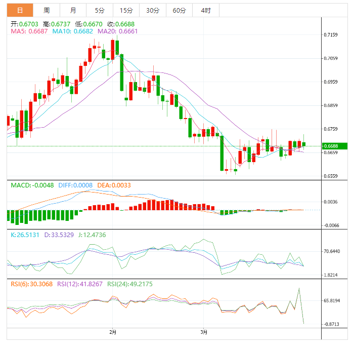 周五盘中,澳元兑美元下跌至0.6689,跌幅0.31%。 澳元基本面:由于中国国家统计局()公布了好于预期的I数据,澳元兑美元已经跃升至0.6730上方。制造业采购经理人指数降至51.9,高于51.5的普遍预期,但低于之前发布的52.6。非制造业采购经理人指数升至58.2,高于之前发布的56.3。中国经济看起来正在稳步复苏,因为