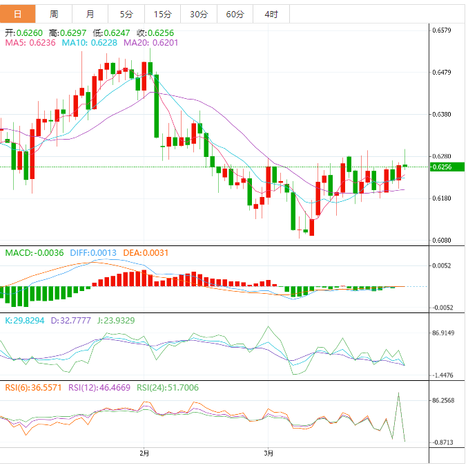 周五盘中,纽元兑美元下跌至0.6258,跌幅0.05%。 基本面上,纽元兑美元连续第二天获得积极牵引,并在周五触及2月16日以来的最高水平,尽管在0.6300关口附近面临阻力。在欧洲早盘,现货价格在0.6270-0.6275区域附近交易,现在似乎在技术上重要的200日简单移动平均线(A)上方获得了接受。 技术面上,纽元兑美元再次