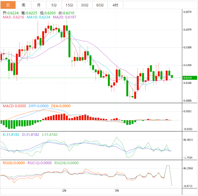 纽元兑美元在周四早盘下跌至0.6200,延续了前一天从周高点的回调。这样一来,纽元对就证明了美元的普遍坚挺,以及来自新西兰(Z)的喜忧参半的数据。 新西兰建筑许可2月份下降9.0%,预期回升0.5%,此前为-5.2%。然而,澳大利亚和新西兰银行集团(AZ)的情绪指数在3月份走强,但出现了负面数据,未能吸引纽元/美元的买家