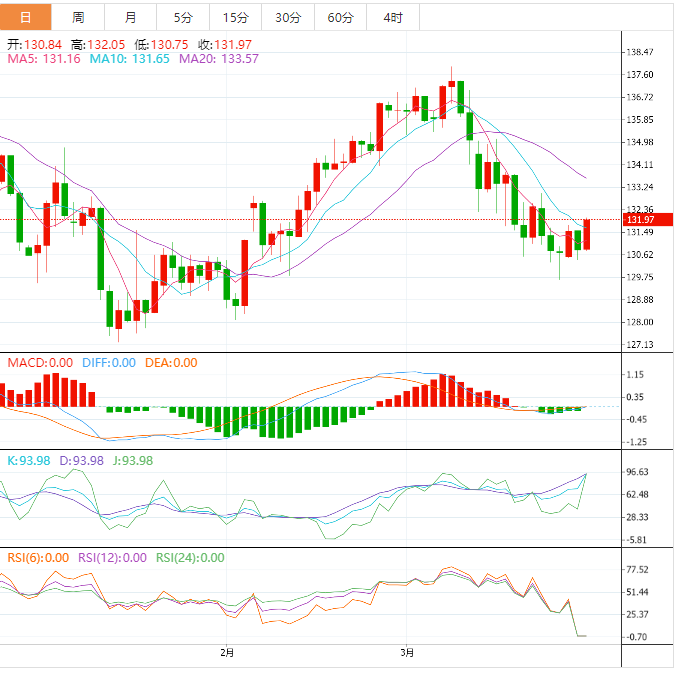 周三盘中,美元指数上涨至102.62,涨幅0.16%;欧元兑美元下跌至1.0833,跌幅0.08%;英镑兑美元下跌至1.2314,跌幅0.17%;美元兑日元上涨至131.90,涨幅0,78%;澳元兑美元下跌至0.6683,跌幅0.35%。 日元全线走软,因银行业担忧减弱且有“特殊”资金流 美元兑日元带动日元交叉盘走高,日元则走弱;美元兑日元从130.