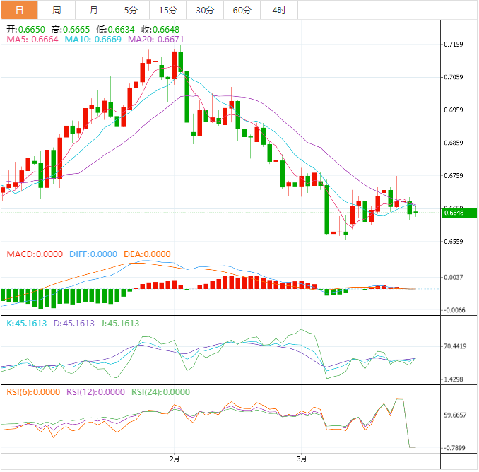 周一盘中,澳元兑美元上涨至0.6649,涨幅0.06%。 澳元基本面:澳元兑美元在经历了动荡的一周后,在周一的低迷交易时段,买家努力保持在0.6650附近。在此过程中,澳元兑美元收复了本周的失地,但缺乏反弹动能,无法延续上周五尾盘从一周低点的修正反弹。 澳元技术面:澳元兑美元成功突破了0.6665,并以低于该水平的