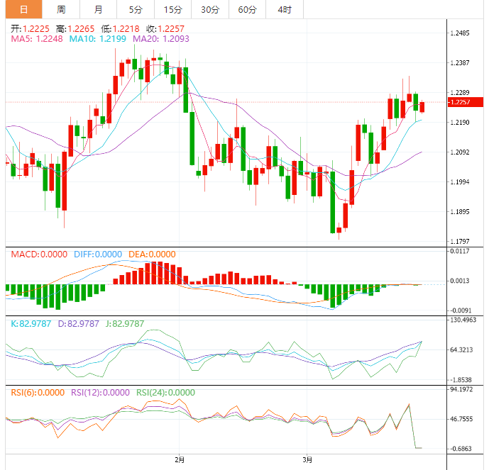周一盘中,英镑兑美元上涨至1.2242,涨幅0.09%。 英镑基本面:英镑/美元跌去早盘涨幅,回落至1.2230附近。美元指数逐步整理后出现反弹,英镑/美元继未能攀升突破1.2250直接阻力后出现下跌。由于美国政府承诺向中型银行提供更多金融支持,为市场参与者注入了信心,美元指数试图自103.00反弹。彭博社报导称,美国当局正