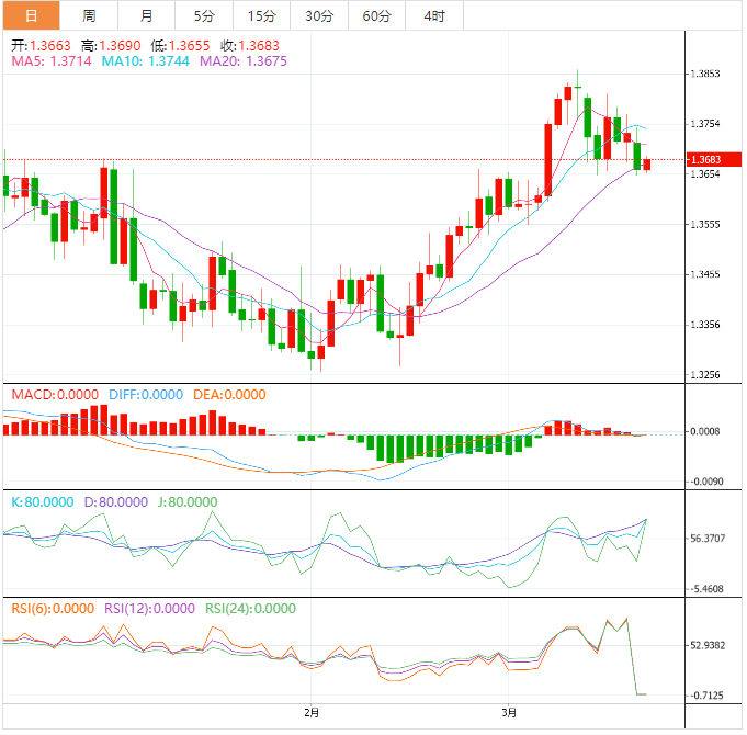 美元兑加元增加买入价,刷新1.3690附近的日顶部,延续亚洲市场早盘从一周低点反弹的势头,进入周二欧洲市常这样一来,加元兑加元为加拿大主要出口产品——西德克萨斯中质油(WTI)的低迷价格欢呼,同时也为美元在加拿大2月份关键通胀数据公布之前的最新复苏提供了理由。 美元兑加元汇率走势基本面解读 西德克萨斯中