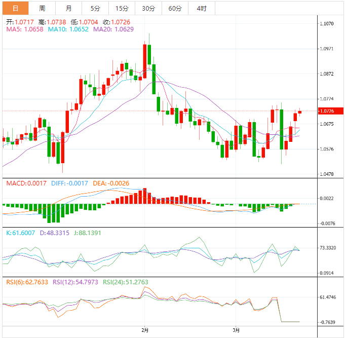 周二盘中,欧元兑美元上涨至1.0727,涨幅0.08%。 欧元基本面:欧元/美元持续窄幅震盪于支撑位整数关1.0700上方。美联储利率决议之前,投资者似乎处在观望当中。因此欧元/美元正维持美联储决议公佈前的波动,有望延续观望。欧央行行长拉加德发表评论后,欧元週一仍然非常活跃。欧洲央行行长拉加德证实,欧元区通胀水平