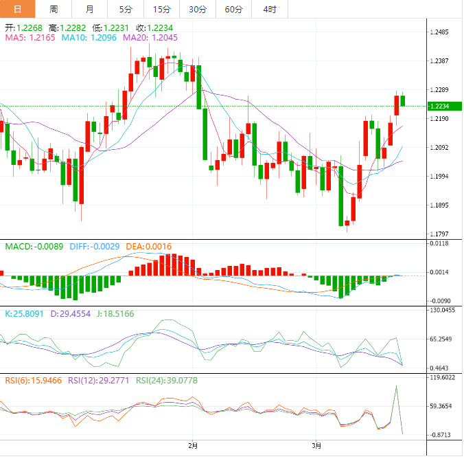 周二盘中,英镑兑美元下跌至1.2234,跌幅0.29%。 英镑基本面:英镑/美元调整至1.2250。由于美元反弹,使得该货币对出现调整。美联储决议公佈前市场焦虑,美元指数录得当日高点103.43。不过美联储维稳利率可能性受到关注,英镑依然倾向上涨。在英国方面,在英国央行(o)宣布货币政策和英国通胀数据的情况下,预计本