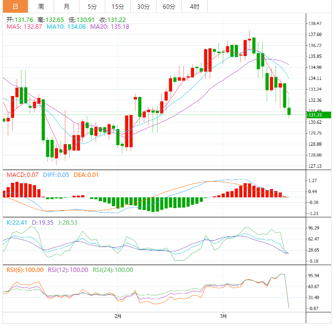 周一盘中,美元兑日元下跌至131.24,跌幅0.44%。 基本面上,据路透社报导,日本央行3月政策会议的意见摘要显示,尽管一些委员警告需要仔细审查宽鬆政策的副作用如市场功能恶化,但委员会成员认为目前有必要维持超宽鬆的货币政策。美元/日元大幅整理于132.00下方。继西方央行加息可能引发全球银行业动荡之际,日元作为