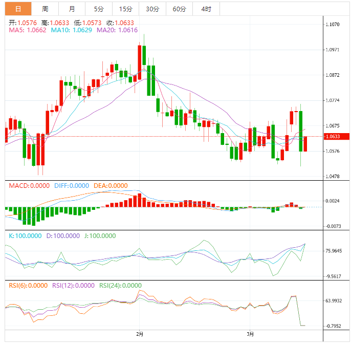 今日外汇市场走势分析 周五盘中,美元指数窄幅震荡,目前交投于104.28附近。隔夜美元指数下跌约0.29%,欧元兑美元上涨约0.36%,周四下跌,因在瑞士央行向瑞士信贷抛出了540亿美元的救命资助后,欧洲央行在最近几天市场混乱的情况下仍按计划加息50个基点。 日内关注,欧元区2月核心调和CI年率-未季调终值,欧元区2