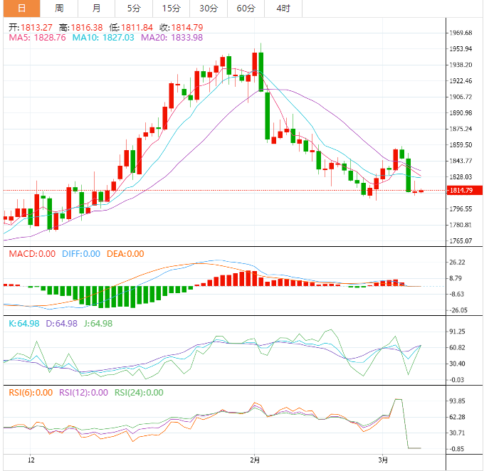 黄金价格走势综述 周五盘中,黄金交投于1831.18附近。金价周四跳涨,因为美元回落,此前数据显示美国上周初请失业金人数增长超过预期,为投资者提供了一些希望,即美联储的加息可能没有人们担心的那么激进。 日内关注,英国1月GD月率,英国1月季调后商品贸易帐,英国1月工业产出月率,德国2月CI年率终值,法国1
