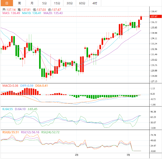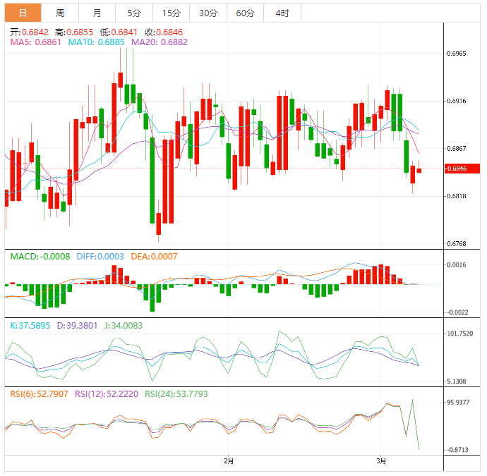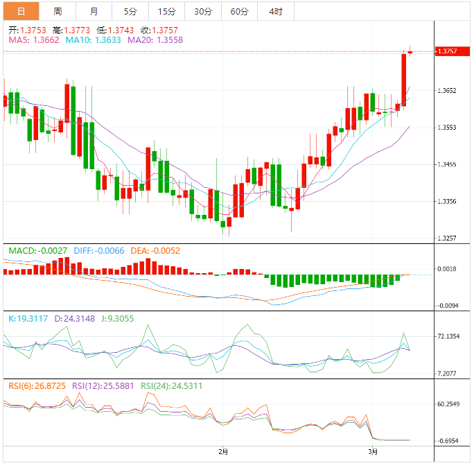 周三盘中,美元兑加元上涨至1.3759,涨幅0.04%。 加元基本面:本周,美联储理事克里斯托弗?沃勒(ChritohrWallr)表示,2月份强劲的经济指标只是一次性的昙花一现,价格压力将从下个月开始恢复下行趋势。与此相反,美联储的鲍威尔在利率指导方面极为严厉。为了明确,投资者正热切等待美国自动数据处理(AD)就业变化