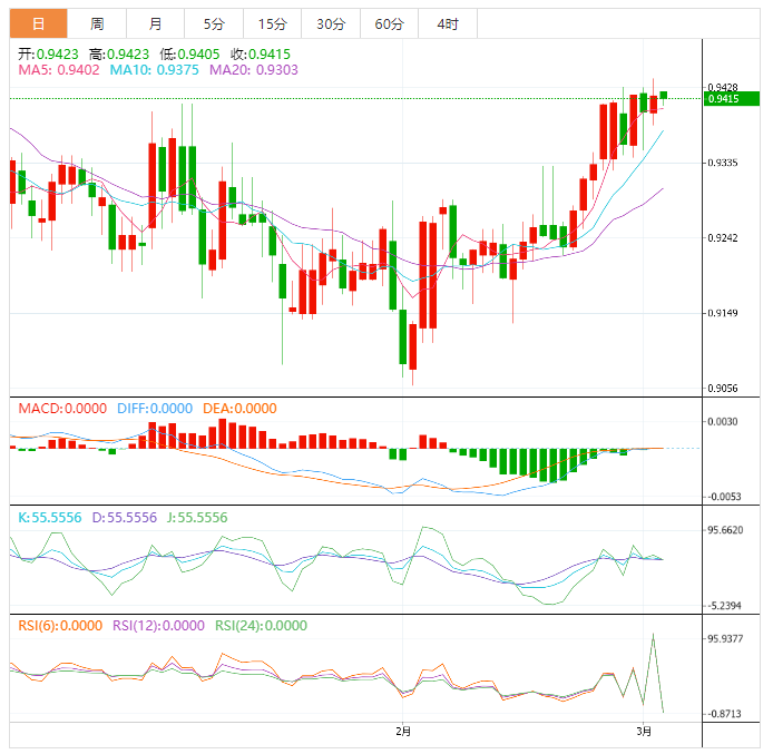 周五早盘,美元兑瑞郎在0.9420附近盘整,几小时前从年初至今(年初至今)的高点回落。尽管如此,在美元全面上涨的推动下,瑞郎兑美元在前一天升至三个月高点,但随后美联储官员发表的喜忧参半的言论,加上美国数据乏人意,对多头构成了挑战。在关键的美国2月I服务业I公布之前,市场的谨慎情绪也可能对该指数构成挑战。